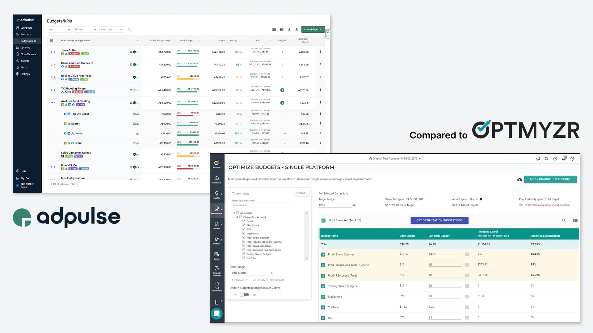 So, the Optmyzr budget functionality is similar to Adpulse, but it uses a combination of separate tools and scripts to achieve the same functionality that you get in one place with Adpulse and Shape.io.